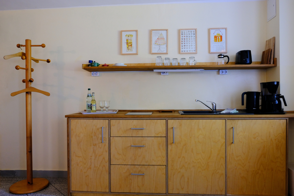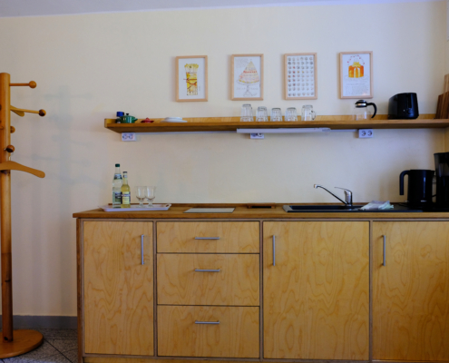 Die Küche ist komplett ausgestattet (Herd mit zwei Platten, Kühlschrank, Waschbecken, alle notwendigen Küchenutensilien), so dass Sie sich selbst versorgen können. Wenn Sie es bequem haben möchten, empfehlen wir Ihnen unser Gutsherrenfrühstück.