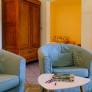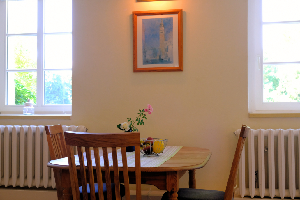 Die Wohnung liegt im Tiefparterre und ist über wenige Stufen gut zu erreichen. Sie ist daher besonders für Personen mit Mobilitätseinschränkungen geeignet (allerdings nicht rollstuhlgerecht). Durch die Ausrichtung nach Süden ist das Appartment sonnig, im Sommer aber auch bei hohen Außentemperaturen angenehm temperiert.