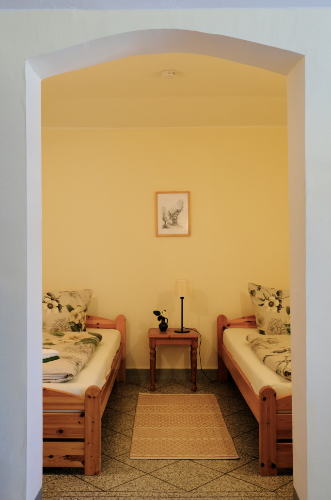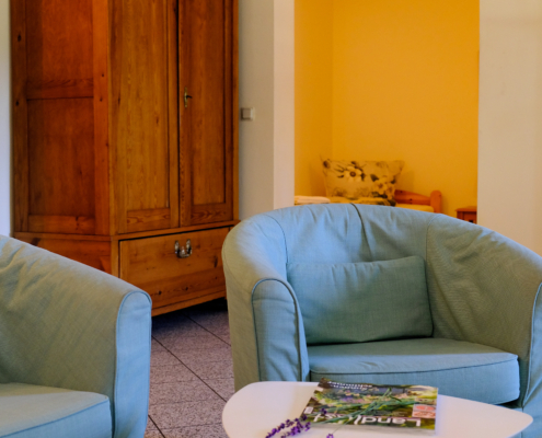 Sehen Sie den Storch vor Ihrem Fenster durch den Park spazieren. In unserer Ferienwohnung 1 können zwei bis drei Personen (35 m²) übernachten. Das freundliche, helle Appartment besteht aus einem Schlaf